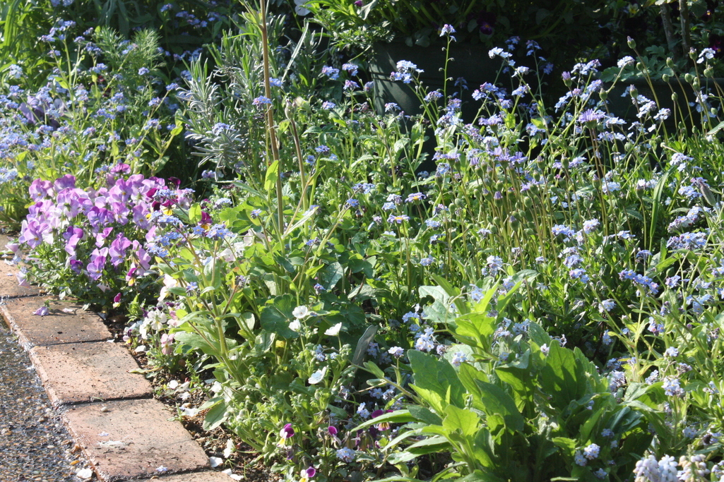 青い庭大好きです!これから日射しが強くなるとブルーの花が涼やかでいいですね。ワスレナグサ、秋にも咲くって知りませんでした。試してみます。