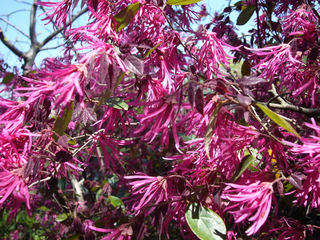 トキワマンサク?ベニバナマンサク?風にあおられています。