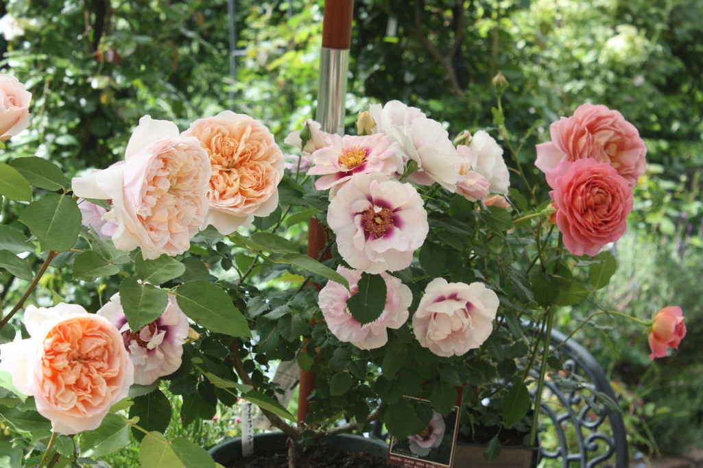 エブリン、アイズフォーユー、ジュビリーセレブレーション・・・窓を開けるとこのバラたちが見えます。私に幸せをくれるバラたちです。