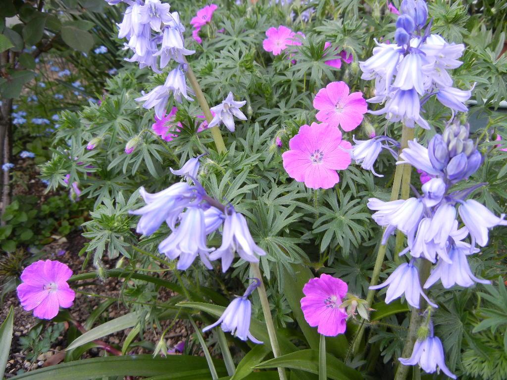 ゲラニウム大好きです。我が家でも冬の間はどうしても株が縮んでもう駄目か?と思うけど春になるとちゃんと復活してくれます。こぼれだねでもよく増えて、どんな花とも相性がよく、可愛いいい子ですよね。