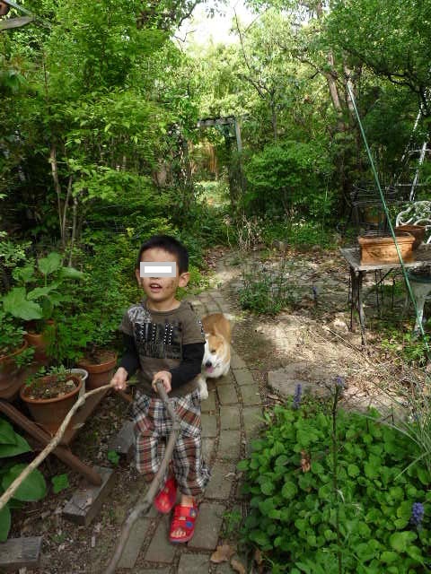 ご近所のショウちゃん、いっぺいガーデンで薪をゲットし、家来を引き連れてご帰還です。
