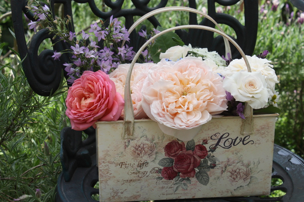 雑貨使いも薔薇も素敵です、笑顔ね飾っているのが想像できますね。