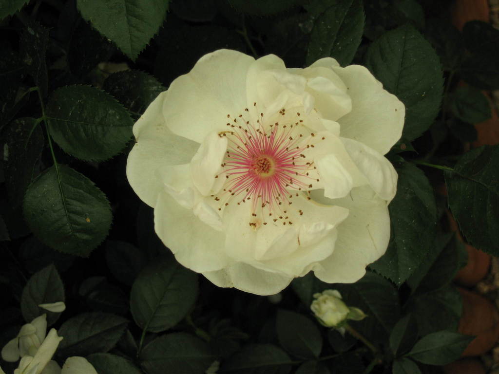 きれいですねぇ~、白い花びらにピンクのしべ、素敵なバラですね、うっとりです。