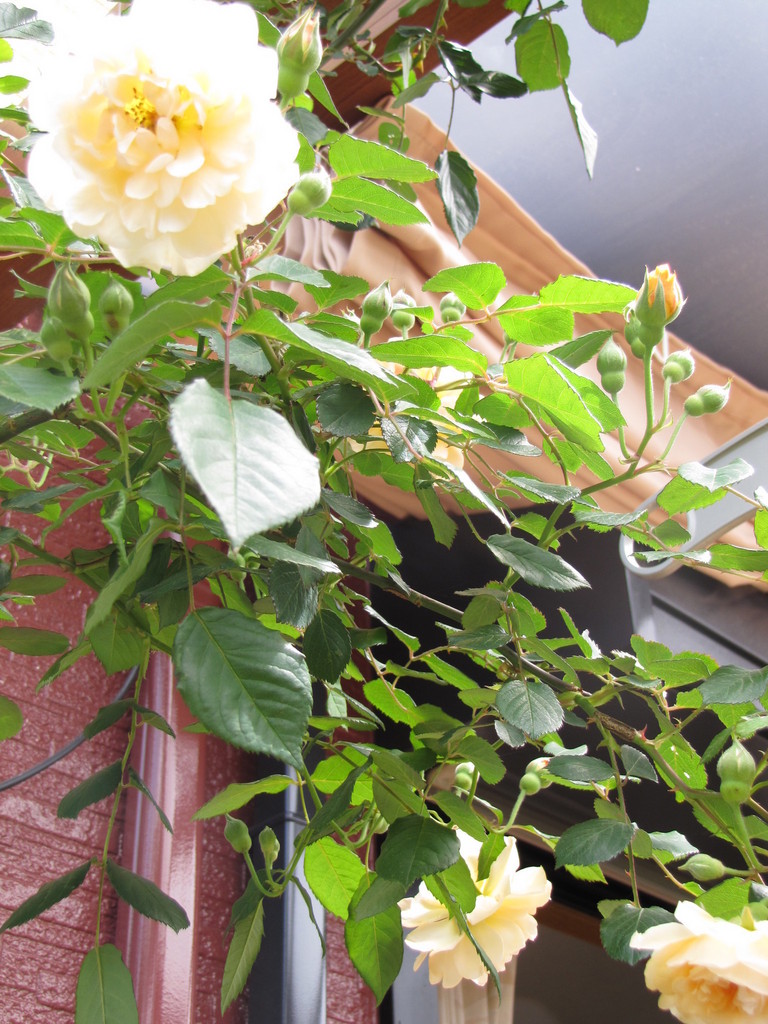 トレリス・パーゴラに這わせています。びっしりと蕾がついているので満開が楽しみです^^