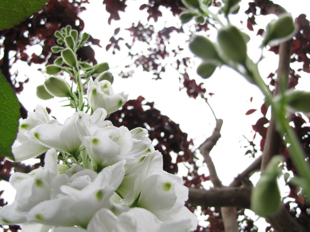 やっぱり綺麗なデルフィニウム♪ 赤いマンサクの葉色とお似合いでした~^^
