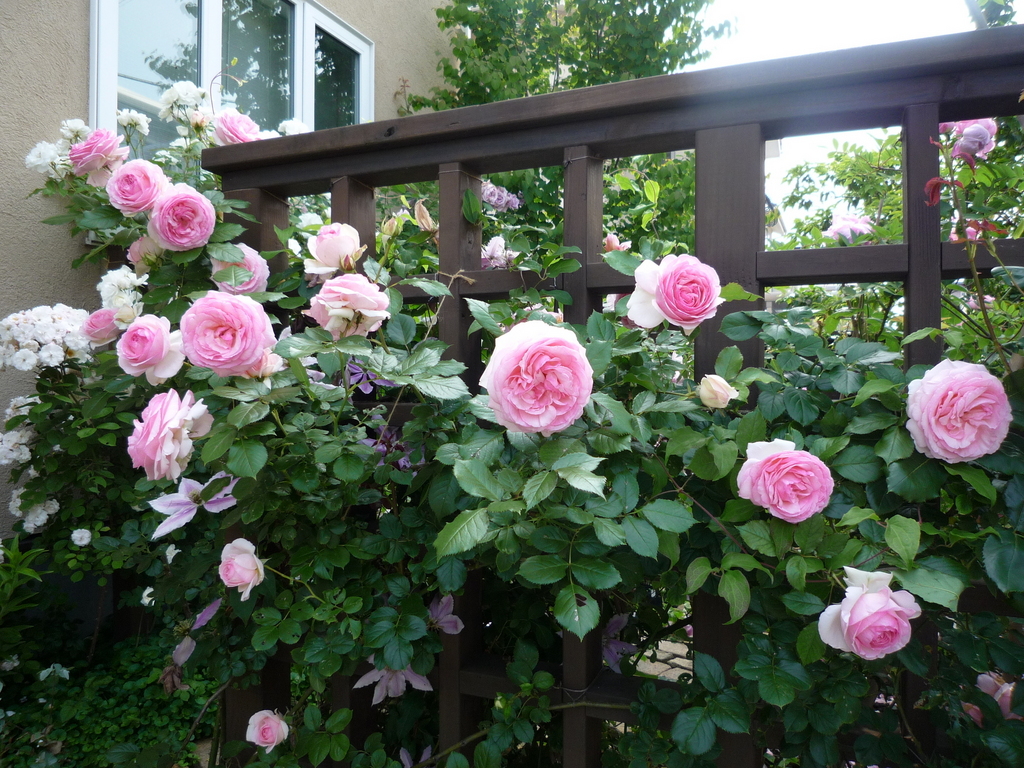 小さいながらも、自慢のガーデンなのです。基本は バラ。クレマチスはポイントで配置しています。バラ苗は切り花品種を中心に約150以上の品種を所有しているのでホント~ 彩り華やかなのですょ~っ。柵は レッドウッドの木組みで近くにあるカーブドッヂ ワイナリーの木組み柵を参考にしているんですょ~。画像は昨年のものですが、今年は 昨年よりも 樹勢が素晴らしく良いので、咲っプリに期待しております。6月に向けて、撮影技術も磨きつつ、庭の手入れに 汗を流していま~す!!