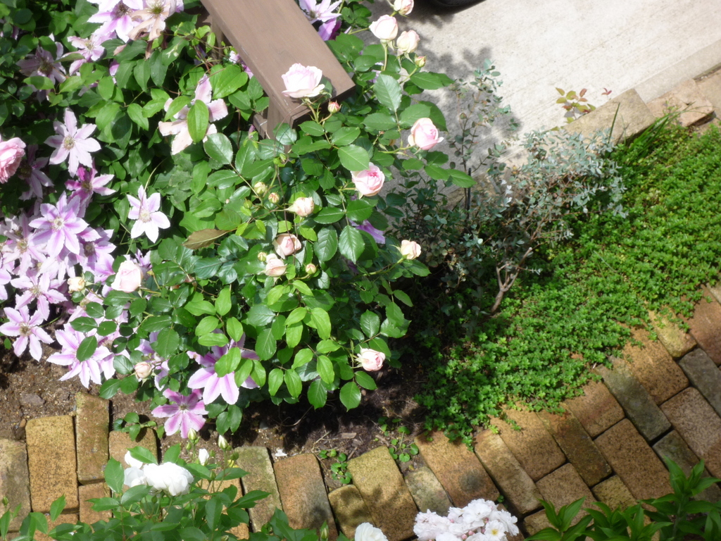 小さいながらも、自慢のガーデンなのです。基本は バラ。クレマチスはポイントで配置しています。バラ苗は切り花品種を中心に約150以上の品種を所有しているのでホント~ 彩り華やかなのですょ~っ。柵は レッドウッドの木組みで近くにあるカーブドッヂ ワイナリーの木組み柵を参考にしているんですょ~。画像は昨年のものですが、今年は 昨年よりも 樹勢が素晴らしく良いので、咲っプリに期待しております。6月に向けて、撮影技術も磨きつつ、庭の手入れに 汗を流していま~す!!