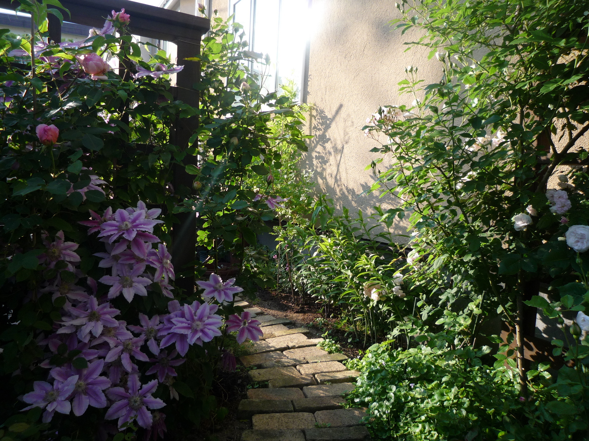 小さいながらも、自慢のガーデンなのです。基本は バラ。クレマチスはポイントで配置しています。バラ苗は切り花品種を中心に約150以上の品種を所有しているのでホント~ 彩り華やかなのですょ~っ。柵は レッドウッドの木組みで近くにあるカーブドッヂ ワイナリーの木組み柵を参考にしているんですょ~。画像は昨年のものですが、今年は 昨年よりも 樹勢が素晴らしく良いので、咲っプリに期待しております。6月に向けて、撮影技術も磨きつつ、庭の手入れに 汗を流していま~す!!