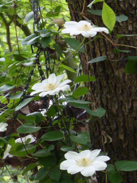いい絡みだわぁ~・・・あっ、クレマチスのことですよ~・・・私は今までクレマチスはオベリスクやフェンスに絡めるものと思い込んでいたので、こんな風に自然に木に絡んでるのとってもいいです。さすがナチュラルガーデンの神様!・・・ほめすぎた~^^
