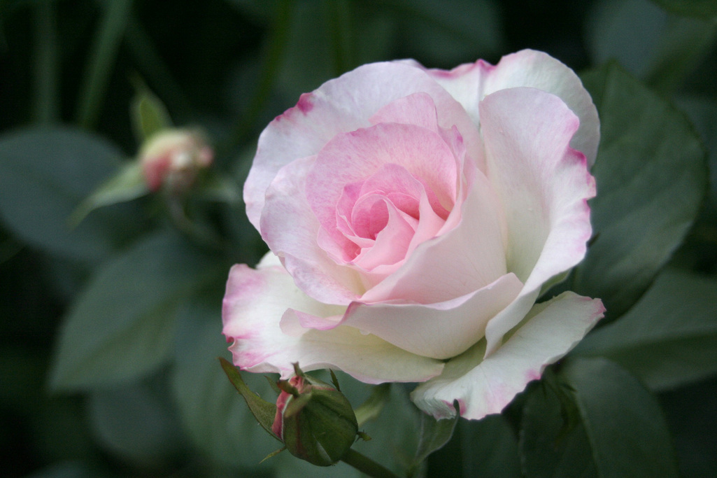 ほんのりピンクが入ったところや、ひらひらした花びらがとてもきれいなバラですよね。妹の家にあって、いつもいいなぁと思ってたんです・・・一枝もらって挿し木しようかな。