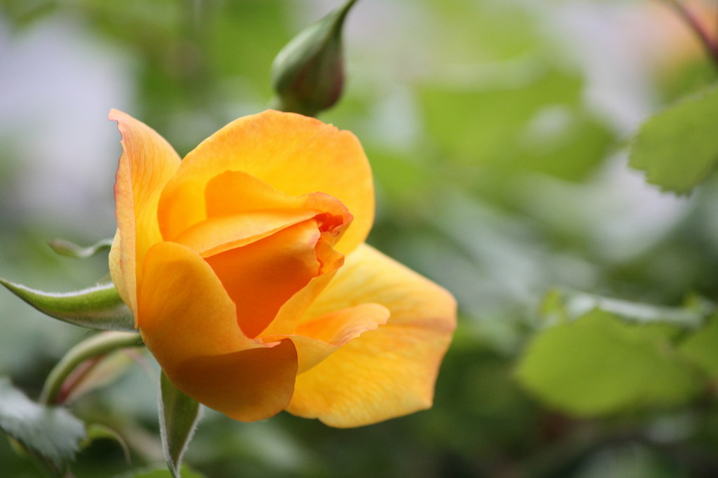 目の覚めるような黄色がかったオレンジ色のツルバラです。強健で次から次へと咲きます。