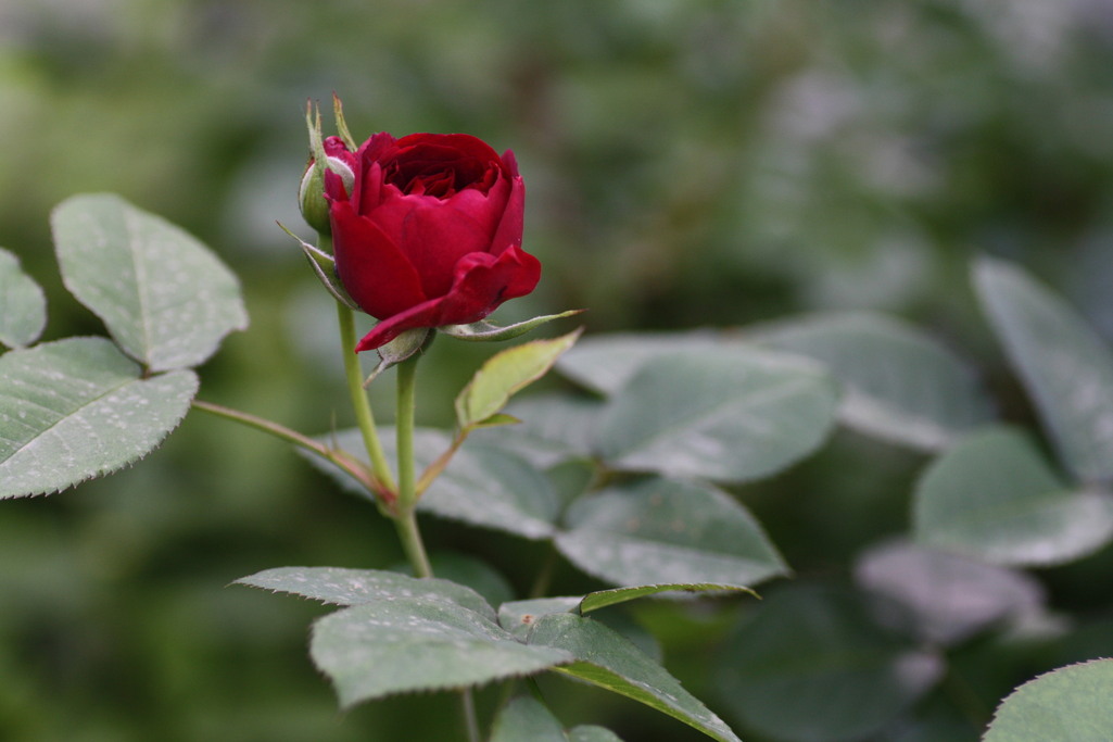 深い赤が印象的なイングリッシュローズです。