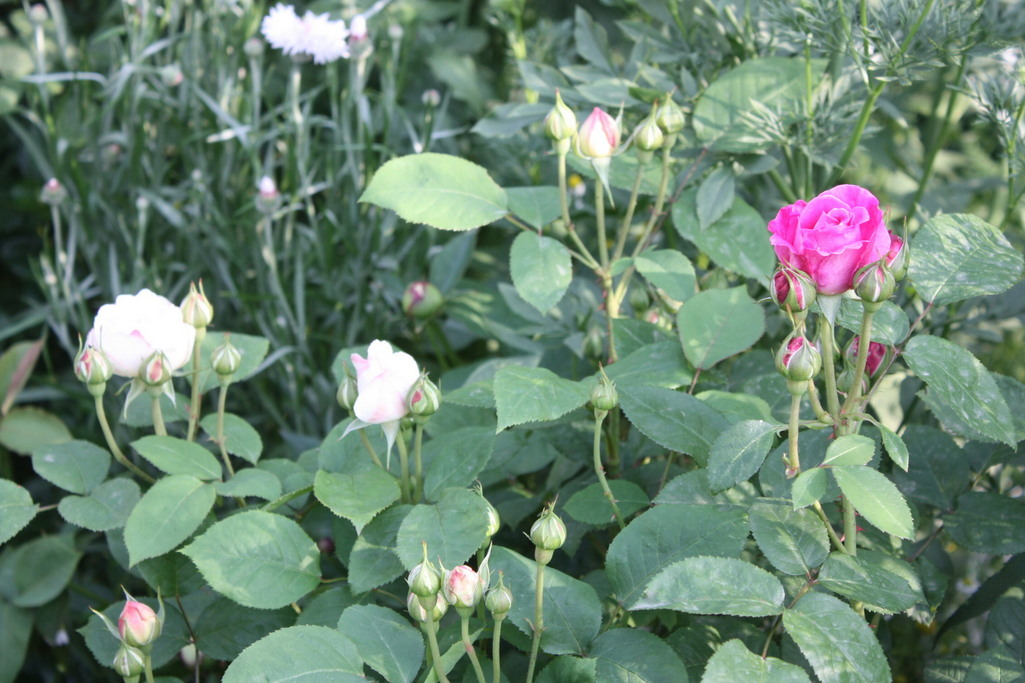 ウィンチェスター・キャシドラルが半分枝代わり元のメアリーローズに戻ってしまいました。1株で2つのバラが見られるなんてラッキー?でもここはホワイトガーデンなのです。今年のホワイトガーデンはピンク入りになっちゃいました~涙冬にはお引越し決定です。