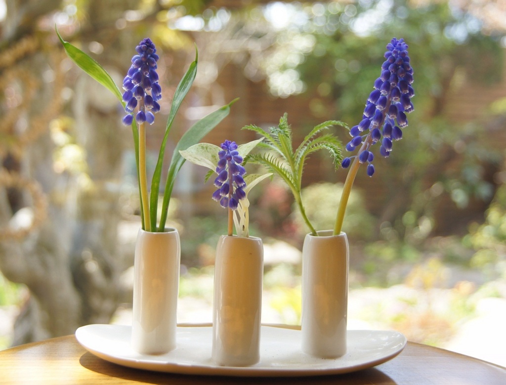 アキレアのギザギザした葉がムスカリに似合ってますね^^
