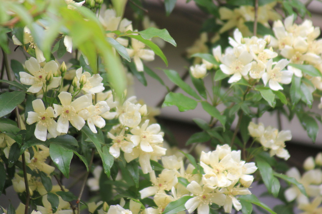 今年は、枝を抜きすぎて、アーチの上は寂しい感じです。だけど、窓の前は素敵な緑のカーテンです。