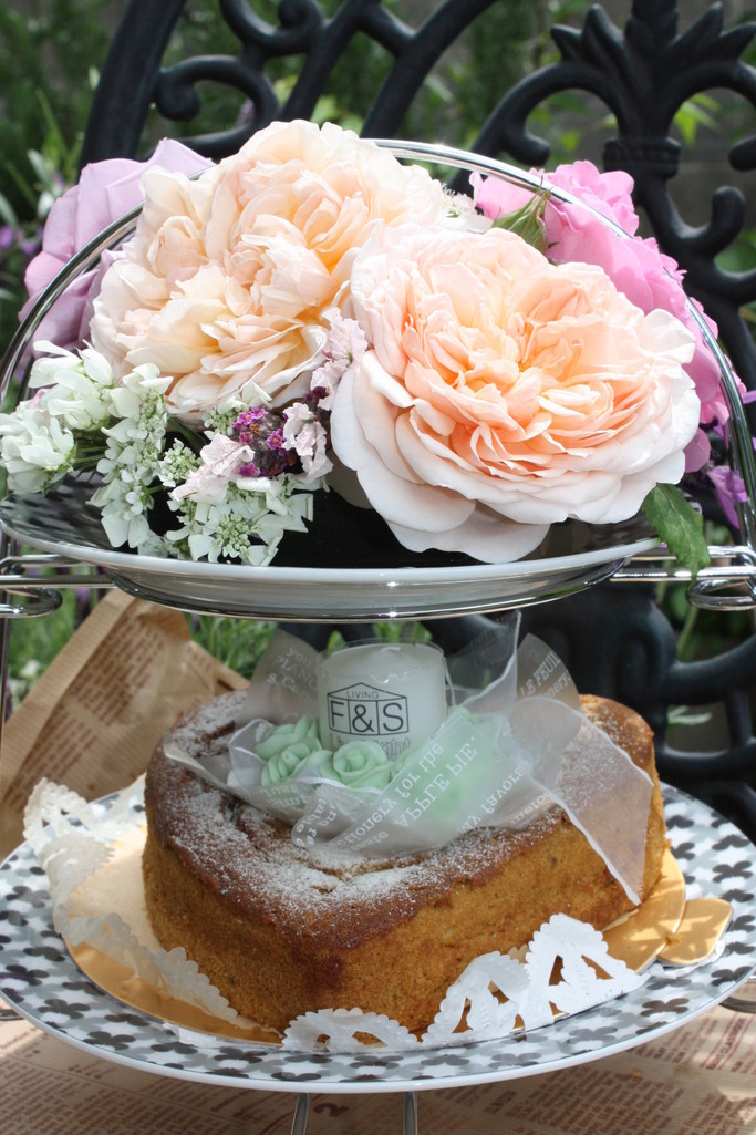 素敵ですね~♪写真を見ているだけで私も幸せな気分になりました♪ケーキの上のペパーミントグリーンの薔薇は何の素材でできているんですか?