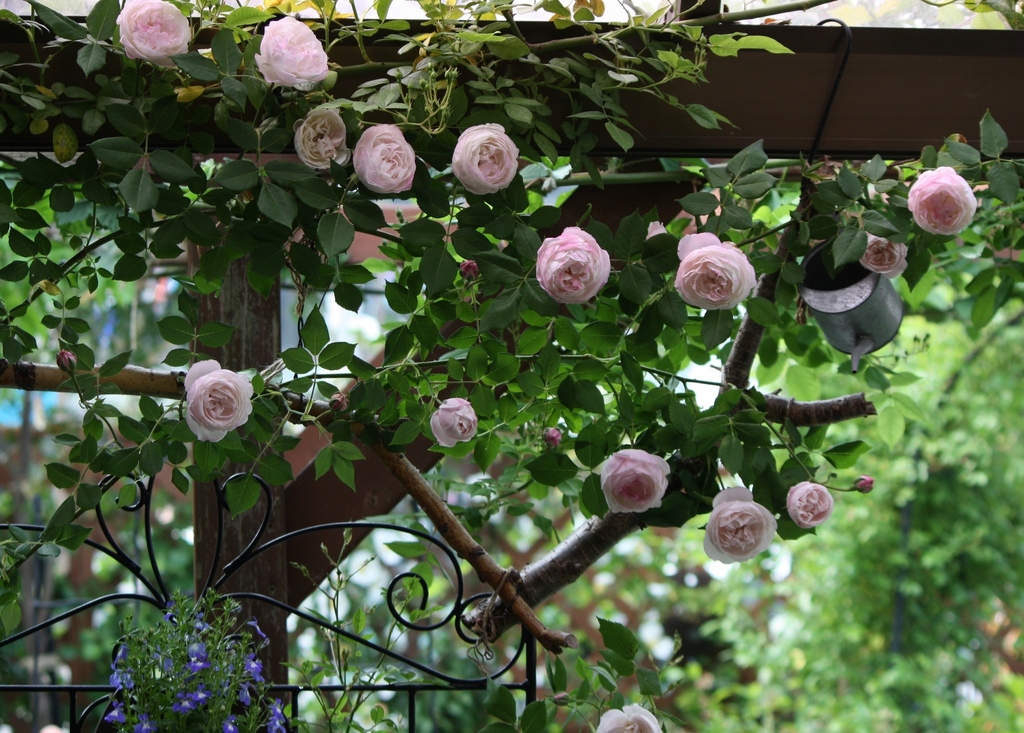 わたしも、オジェ、大好き♪たしか、昨年の国バラのパンフレットの表紙になっていたような。色がちょっと濃い目でしたが。小枝を支柱に使ったり、雑貨があったり、とっても工夫されていて、感心です~♪