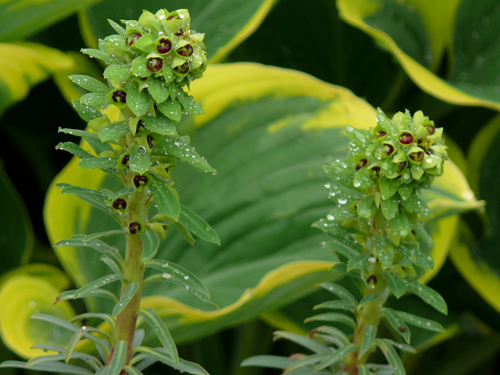 変な形と水滴とギボウシの緑がなんとなく良く感じただけです、だめ~?綺麗な気がするのは水滴ファンだからかな~