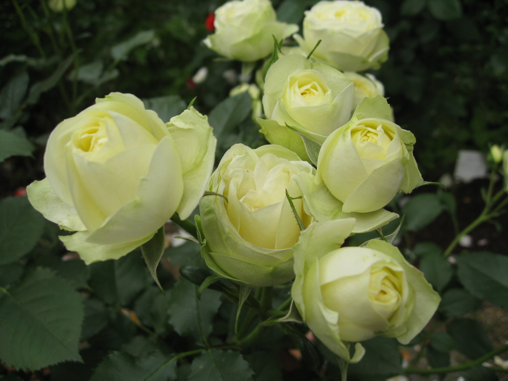 レモンイエローというか、ライムグリーンというか、この淡い色が素敵な薔薇ですね。
