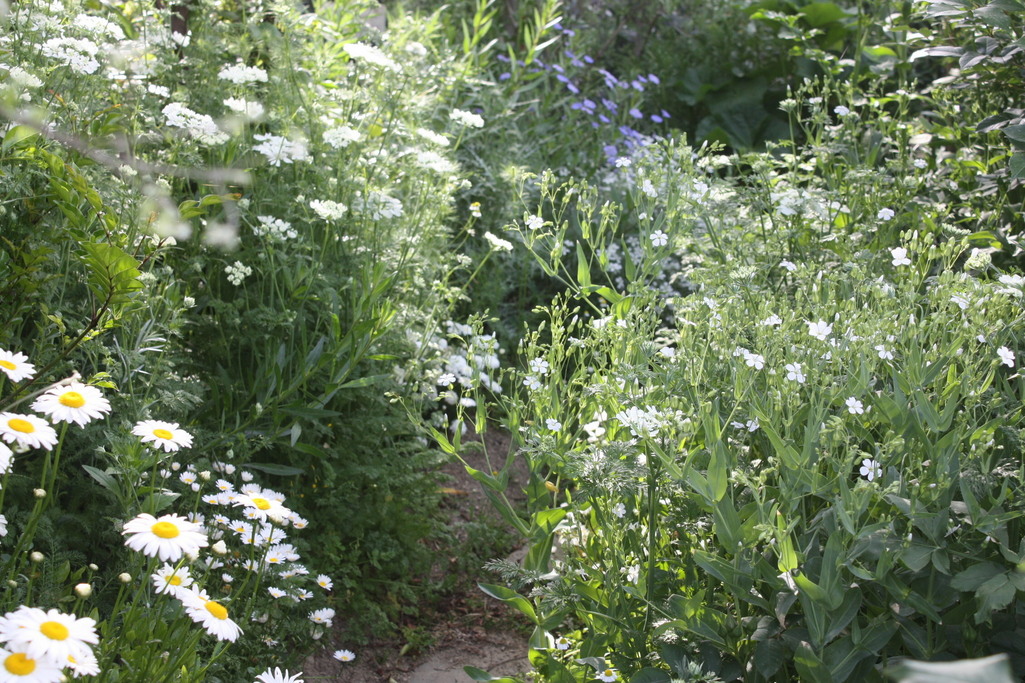 ホワイトガーデン、憧れです。白花たちが自然にふわぁ~っと咲いて凄く素敵!ここにバラが加わったらもう最高ですね。