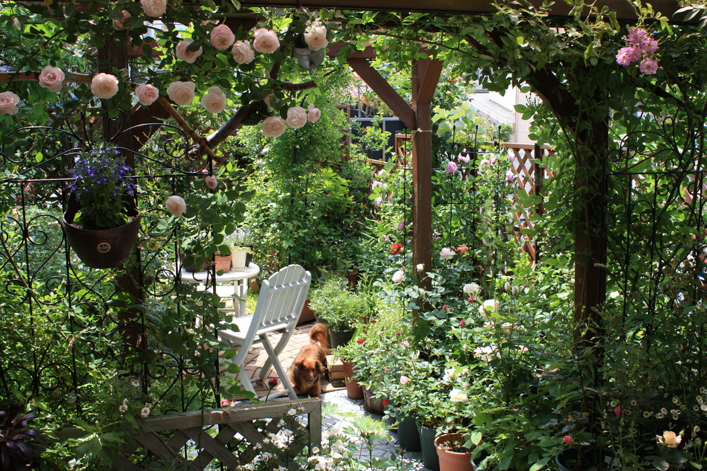 バラがいっぱいの素敵なお庭ですね!あっ、ワンちゃん発見!今度紹介してくださいね♪