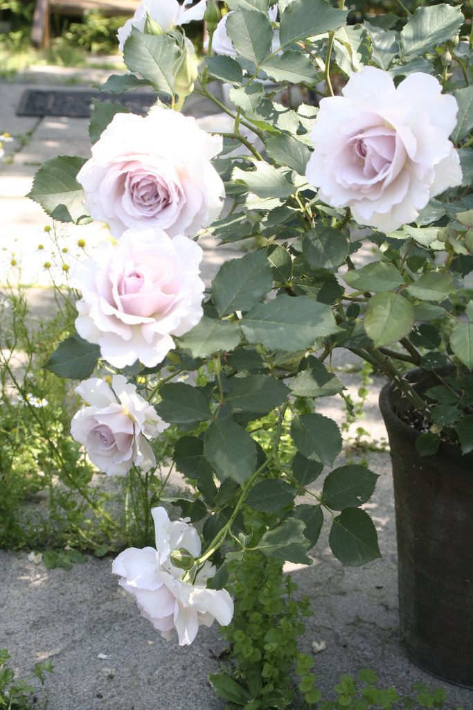 淡い紫色の花弁の、ひらひらした感じがとってもロマンチック。芽接ぎして3年目です。