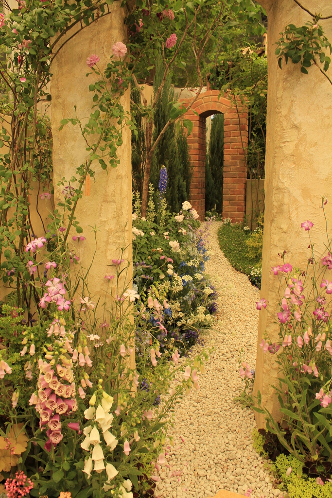 素敵な小道ですね~、ジキタリスの隣のピンクの花は何だろう?とっても私好みの植栽・・・こんな風にしたいなぁ~♡