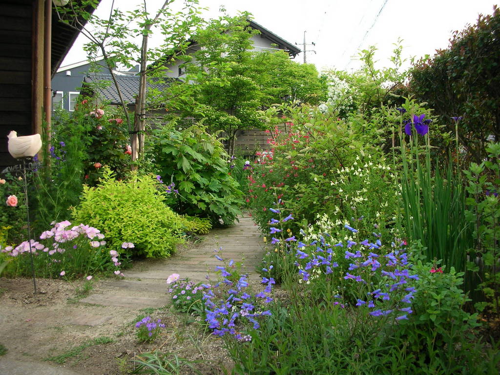 どの花ものびのび大きく育って、居心地良さそうです。^^小道の向こうにちらっと見えるのはデッキですか?素敵なお庭ですね。