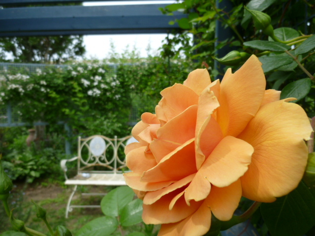 たくさんの薔薇が・・とっても生き生きと咲いていますね・・オレンジ色の薔薇もすてきだな~☆・・後ろに写ってるベンチも可愛いし・・もっと写真を見せてください♪