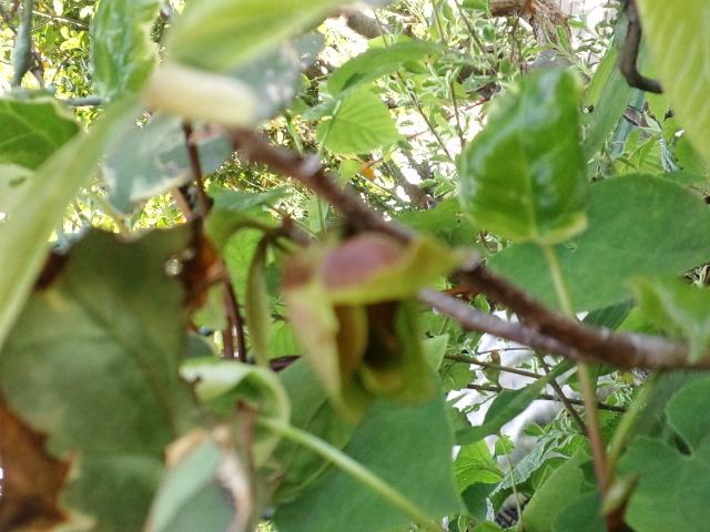 バンレイシ科 苗を育てて十年目。やっと花をつけてくれました。 うれしー♪ 別名 アケビガキ