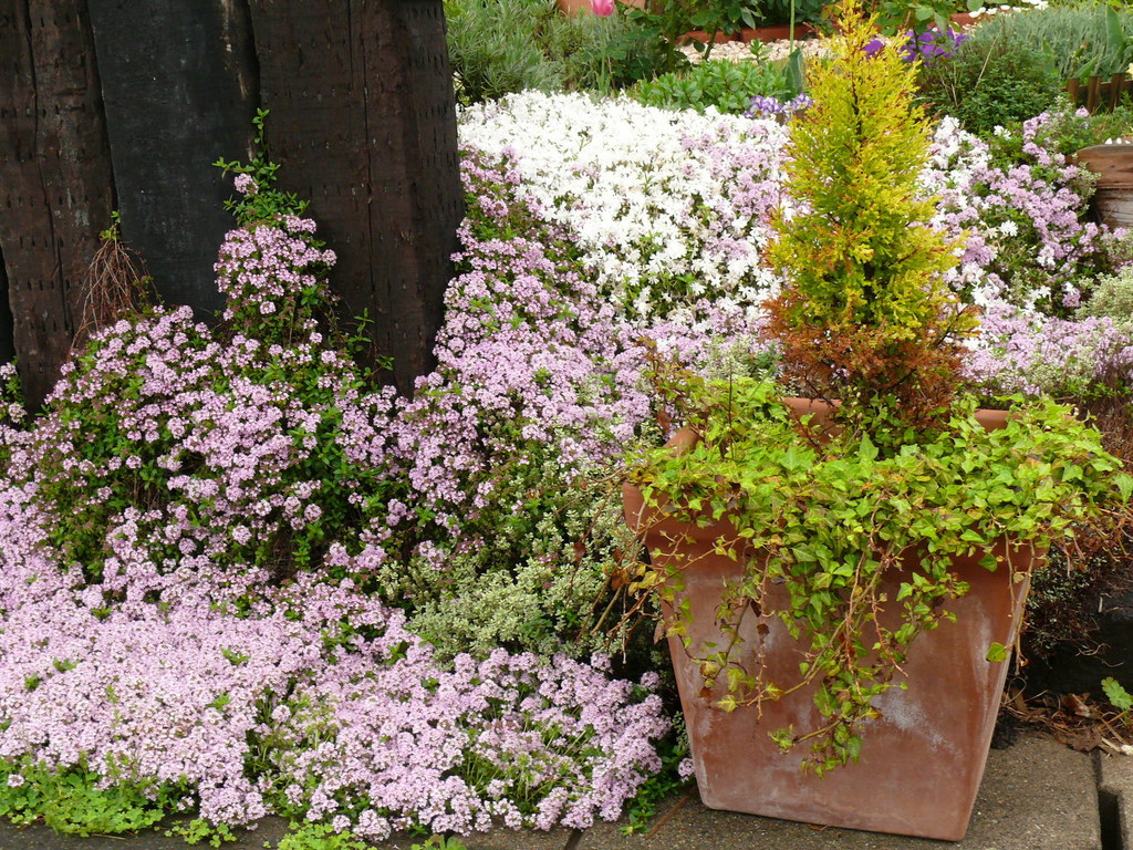 芝桜とタイムが入り口で満開です。