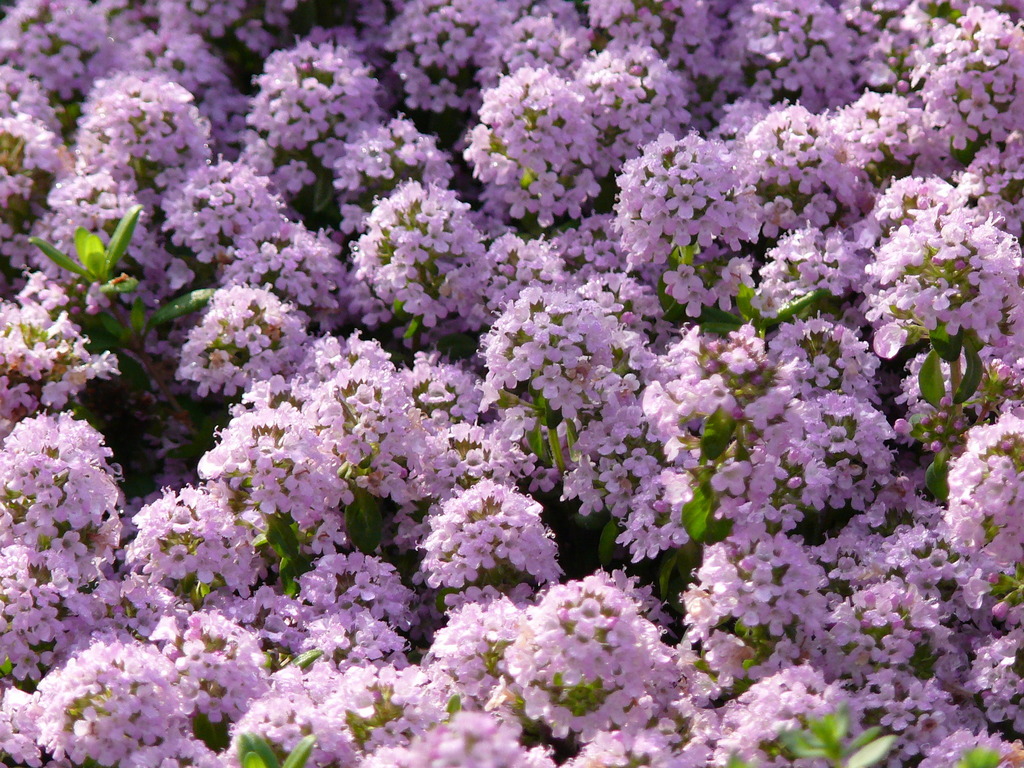 タイムの花です、アプロ-チの随所に植え満開の時は近所の人もワザワザ歩きに来ます。踏んでも平気で香りが良くおすすめです。