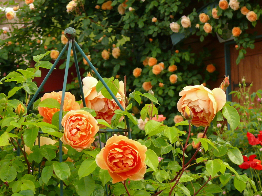 パットオ-スチンとクラウンプリンセスマルガリ-タです、暖色系のバラで庭に元気がでます。
