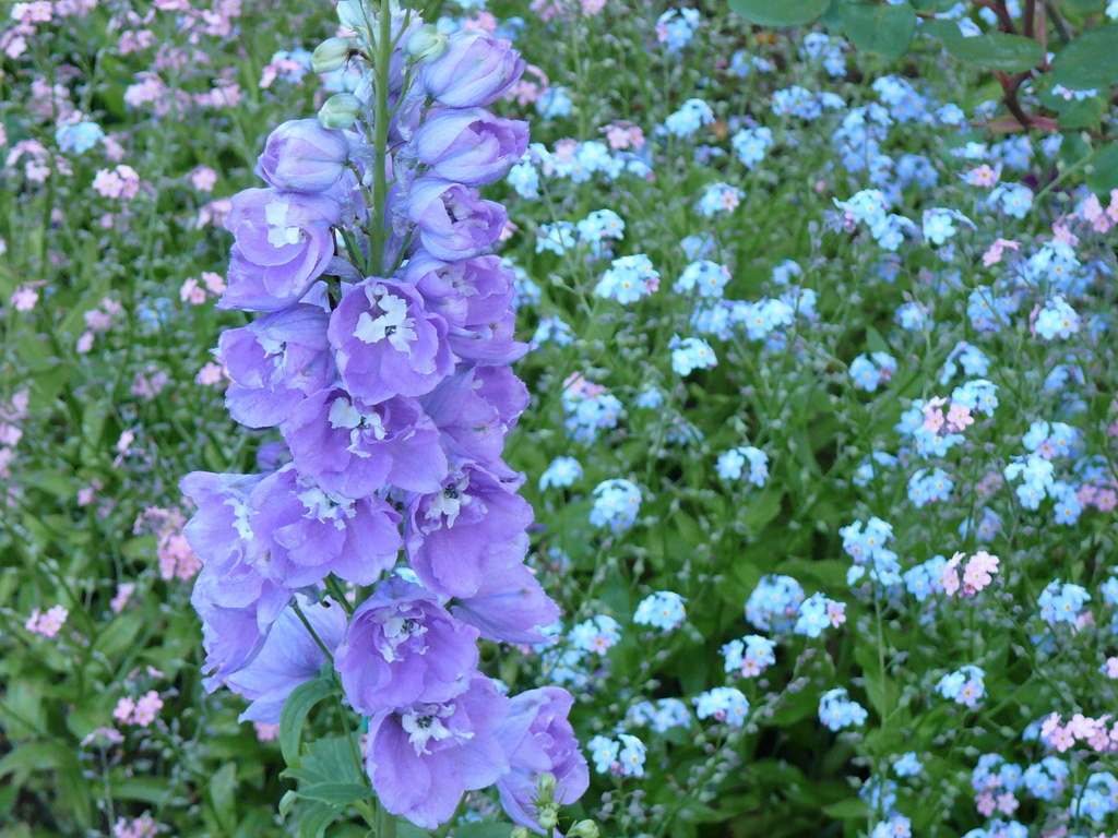 バラには無いブル-のデルフィニウムと忘れな草が、主役の様に美しい一枚です。