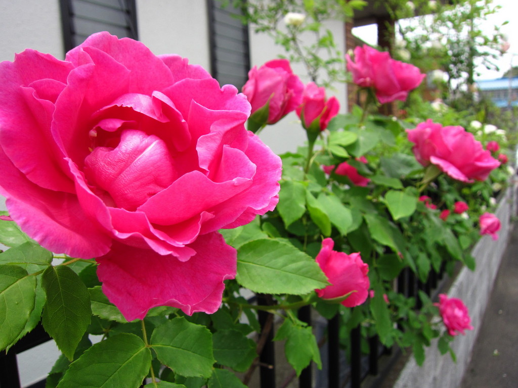 見切り品だったものですが、毎年大きな花を付け、冬まで何度か咲きます。開くと花の形はくしゃくしゃなんですが、このちょっと濃いピンクが遠目にはよく目立ち北側のフェンスを明るくしてくれます。