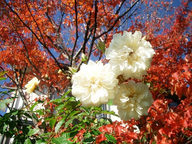 紅葉と秋バラ・・・
