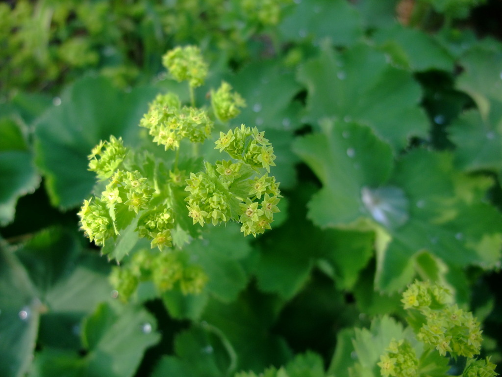 黄緑の花と葉っぱの形が可愛いくておまけに朝露も毎朝見せてくれます♪