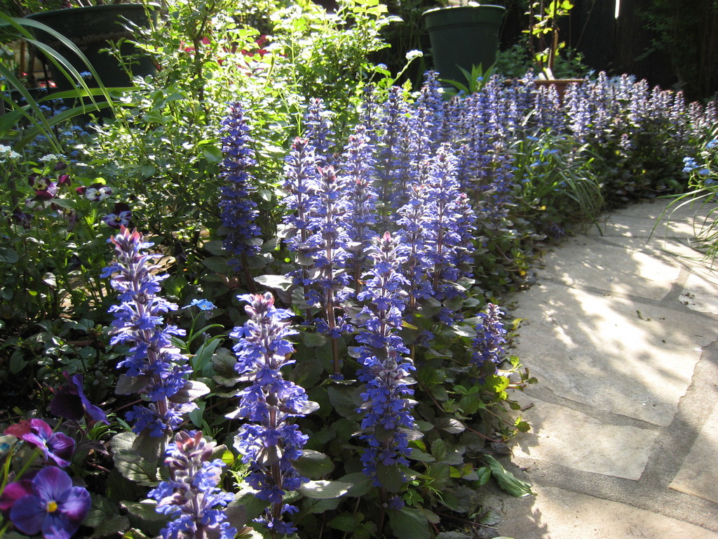 アジュガの小道、すてきですね。元気に大きな花を咲かせてますね!!!