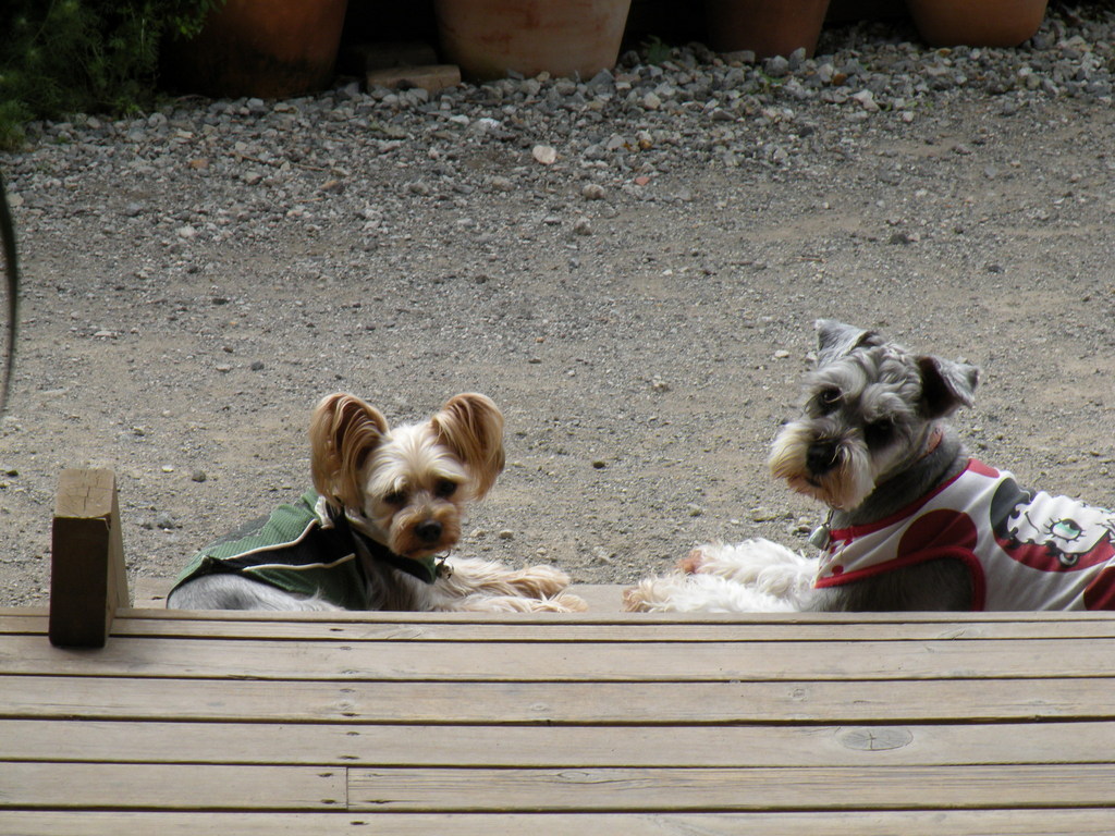 なぜかデッキの階段で仲良く日向ボッコです。なぜ階段????