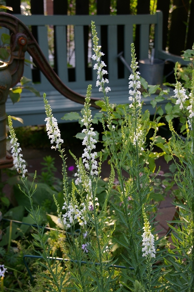 リナリア涼しげでいいですね。後ろに見えるベンチも井戸も雰囲気いいです。