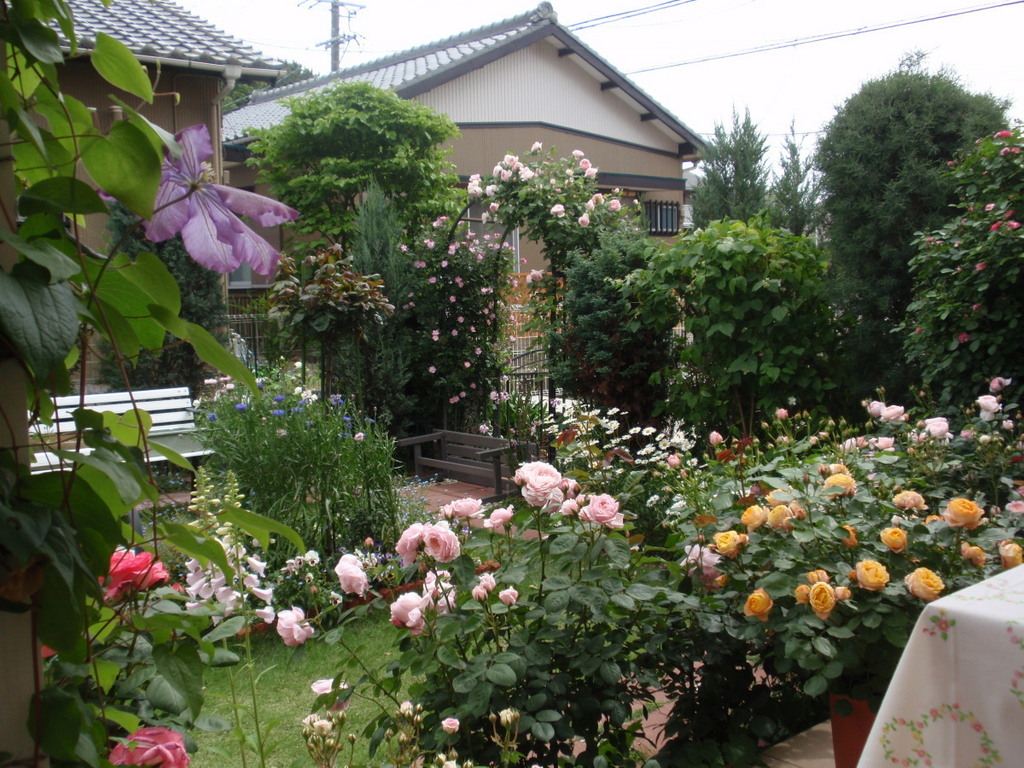 アーチの薔薇はラベンダードリームとキャスリン・モーレーです。どちらも良く咲くお気に入りの薔薇です^^