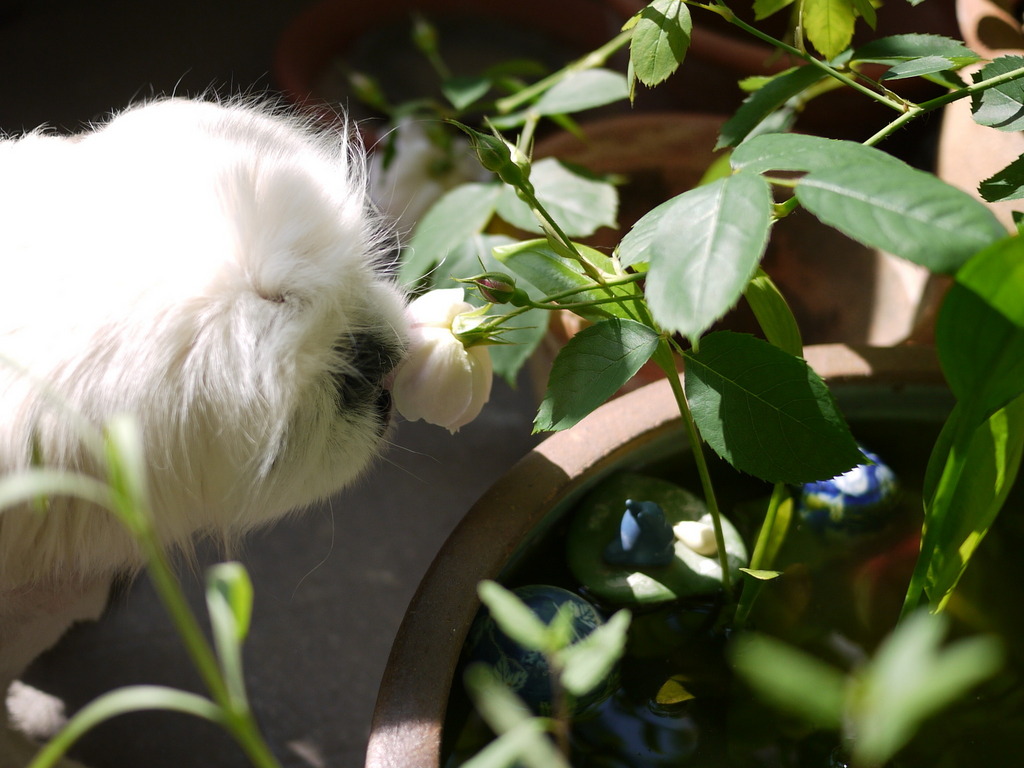 かわい~!!うちにも害虫(犬)いますよ^^; 薔薇には背が届かないんで落ちた花びら掃除専門ですが、あとは今の時期だとパンジーやシャスターデージーなどをぱくぱくっと^^;
