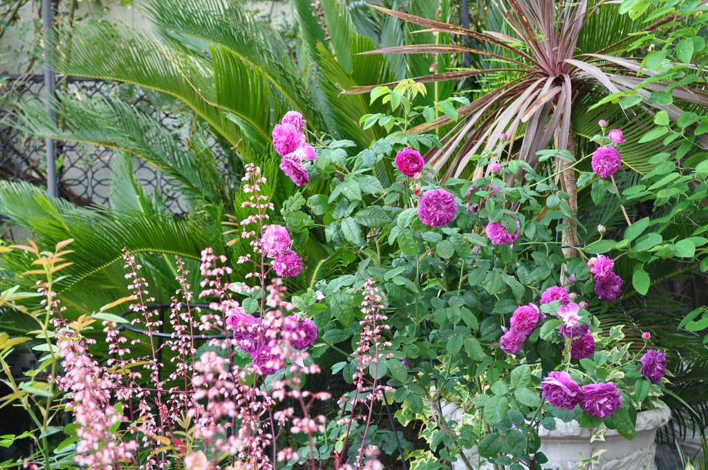ソテツにソフトカラーの花を組み合わせましたか。おもしろいですね。
