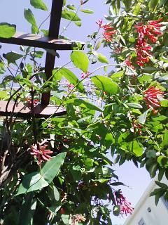 ハニーサックルの仲間のツキヌキニンドウは一足先に咲き出します