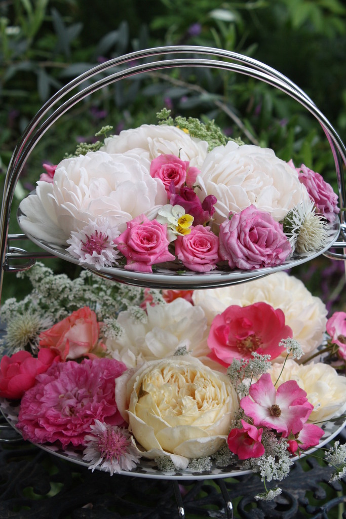 これもまたステキ♪小花のアレンジもまた、センスあふれています♪アレンジもわたしには難しいですが、何より、これだけの数のバラを切ったら、わたしのお庭のバラ、何もなくなっちゃう~~!(涙)なので、憧れなのでしたぁ~