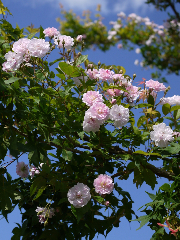 あるバラ園にあった、ポールズヒマラヤンムスク・・・ 大きな木に誘引してありました!!
