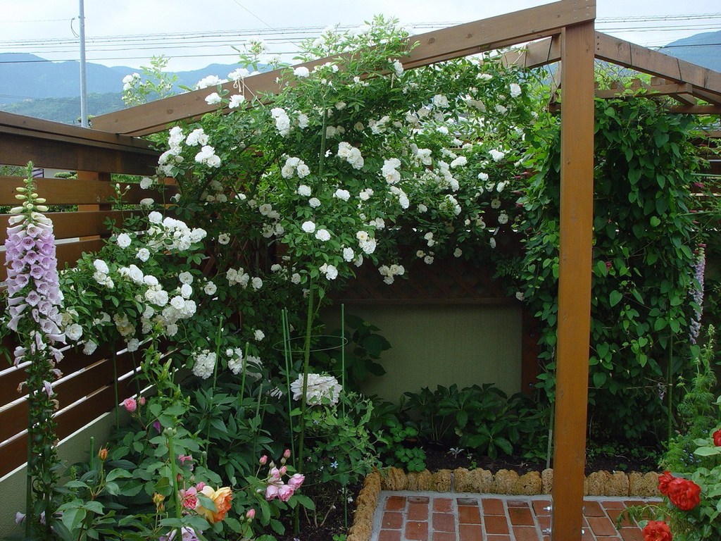 うちにもサマースノーあるんですが、棘がすくなく枝がしなやか、たくさんの花を付けてヒラヒラの花がとても可愛いバラですよね。パーゴラに仕立てるとまた見ごたえがあり素敵ですね。