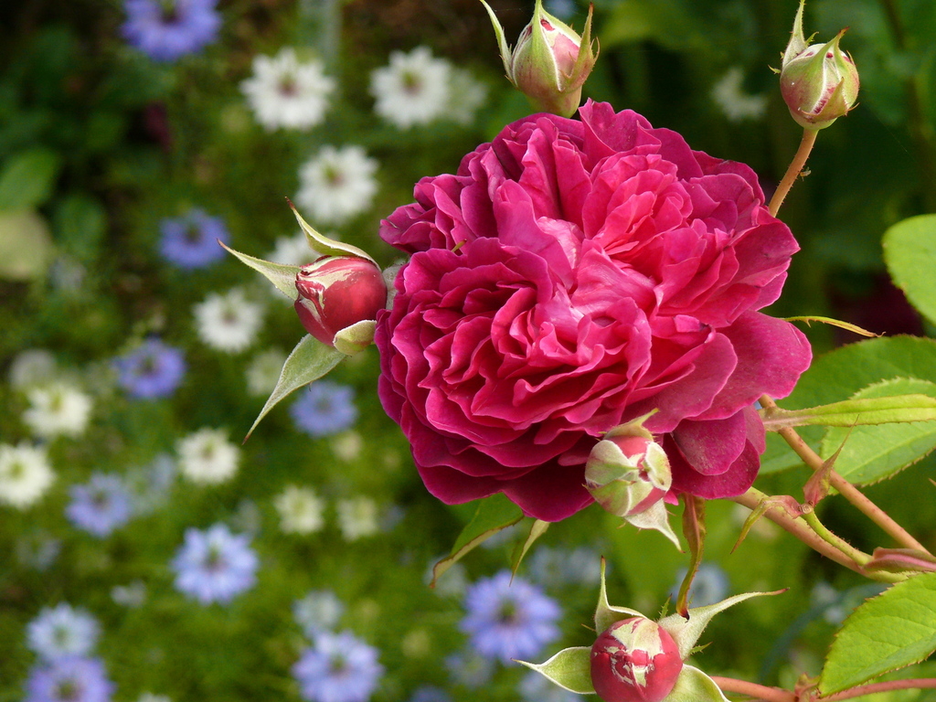 ★形のニゲラとバラの花と蕾の配置が魅力的でした。