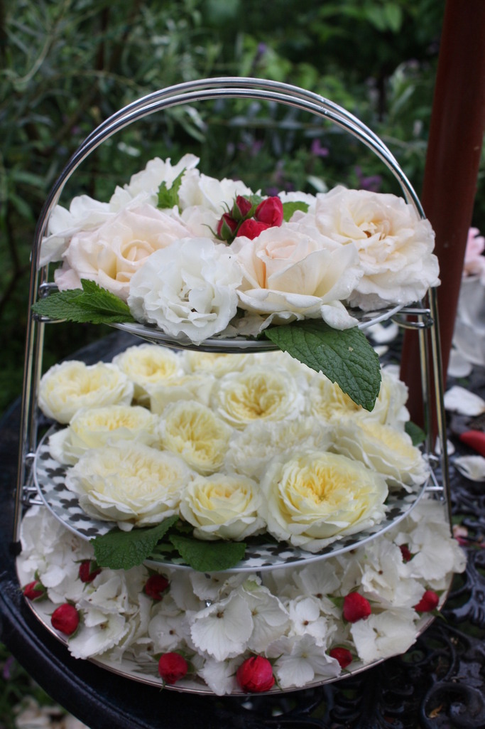 なんて可愛らしいケーキスタンドでしょう。テーブルにこんな飾りがあったら、ティータイムも最高の時間が過ごせそう~。