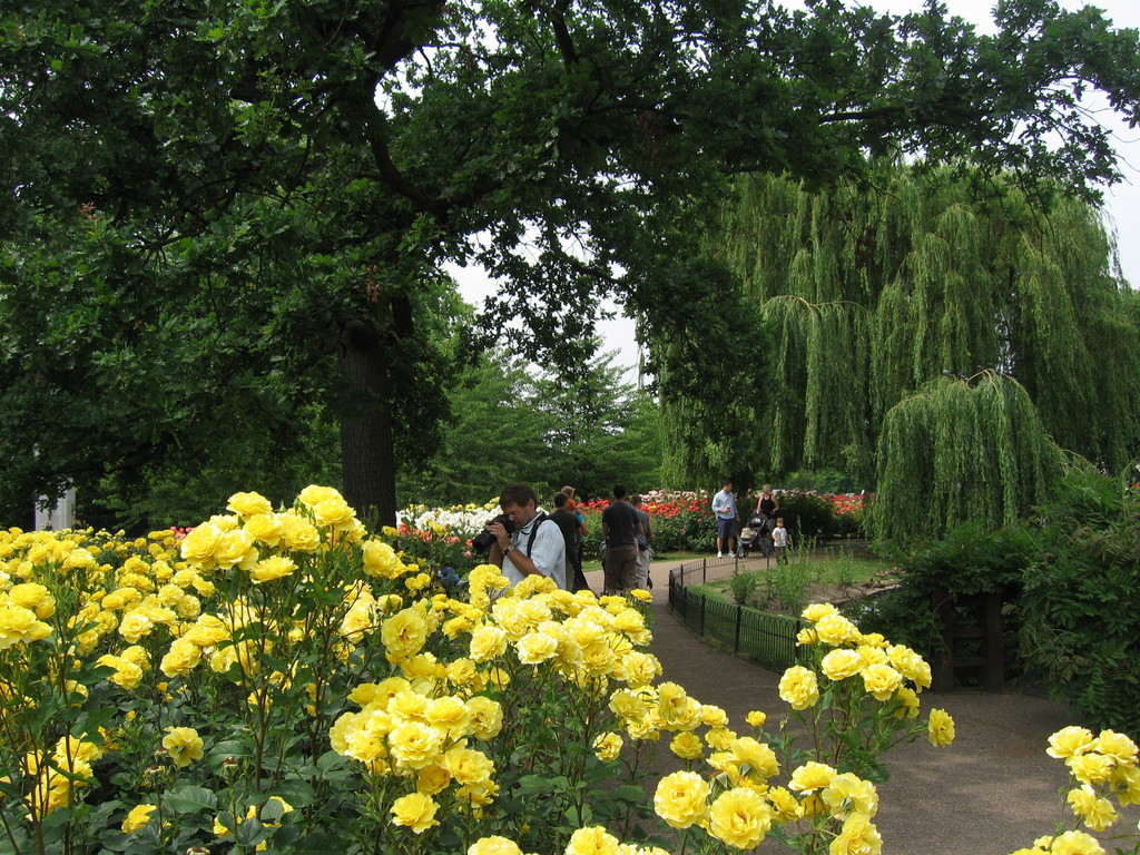 ローズガーデンに柳 流れるような曲線がすてきな風景を作り出していますね~